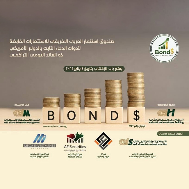 أعلنت شركه العربى الافريقى للاستثمارات القابضه احد شركات البنك العربى الافريقى الدولى عن فتح باب الاكتتاب بتاريخ ٤ يناير ٢٠٢٦ فى ثالث صندوق استثمار مفتوح لها وهو صندوق بوندز، واشار السيد/ حسين الشربينى نائب رئيس مجلس الاداره والعضو المنتدب بان صندوق شركه العربى الافريقى القابضه للاستثمارات لأدوات الدخل الثابت بالدولارالامريكى ذو العائد التراكمى - بوندز، تم اصداره تلبيه للطلب المتنامى على الاستثمار والادخار فى صناديق الاستثمار الدولاريه، وهو فى اطار خطه الشركه فى اطلاق منتجات استثماريه متنوعه، ولقد سبق للشركه اطلاق صندوق داياموند النقدى فى عام 2022، تلاه صندوق كنز بإصداريه ( كنز فرص - كنز شريعه) فى عام ٢٠٢٥. وتعتزم الشركة خلال النصف الأول من ٢٠٢٦ إطلاق مجموعة من الصناديق المتنوعة لتمكين المستثمرين الأفراد والمؤسسات من تنويع استثماراتهم وتقليل المخاطر.